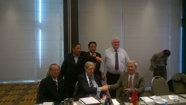 Ông John Waring – cố Chủ tịch MWT Food Australia (ngồi giữa) - Ảnh: VINACAS
