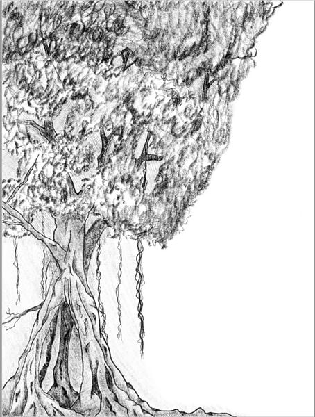 Trong đầu người thanh niên vọng lên những giọng nói từ bậc truyền nhân, với một ngôn ngữ mà anh không thể hiểu được. Anh rùng mình hoảng sợ, đứng lên rời khỏi gốc cây và bước đi. Lúc này các khái niệm không gian, thời gian trong anh không còn. Anh chỉ nghe những tiếng gù của đàn chim cu xanh, những bông hoa đang mỉm cười trong gió và ánh sáng của những buổi bình minh vụt qua. Trên cao các vị thần trò chuyện và quan sát như thể họ đang chờ đợi một thời khắc quan trọng nào đó. Khi bước chân người thanh niên đặt đến một khu đất rộng hình tròn, như một định mệnh được sắp đặt, ngay chính giữa tâm hình tròn có một cây tán lá rộng. Người thanh niên dừng lại một hồi lâu, chăm chú nhìn thân cây lạ như thể anh đã từng thấy nó từ rất lâu rồi. Chiếc áo choàng của anh phát sáng liên tục. Anh chậm rãi bước đến và ngồi dưới gốc cây. Các lá cây tự nhiên trở mình xoay ngược hướng về phía anh. Lá cây phản xạ những tia sáng trên trời như để soi rõ hơn, cho ánh mắt người mẹ trìu mến muốn nhìn đứa con đi xa nay đã trở về.